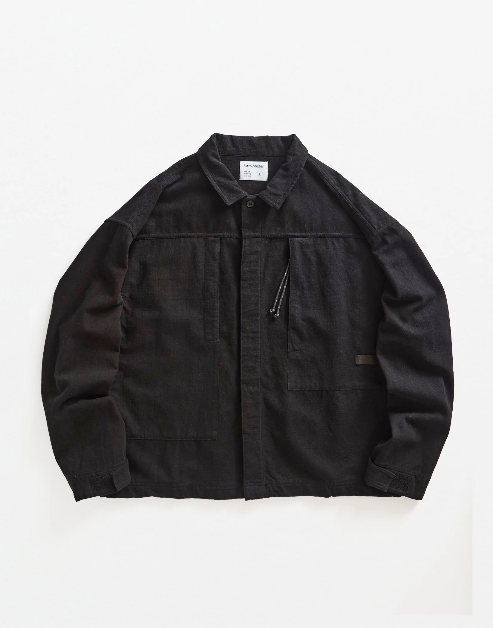Most pieces are made in India using handspun fabrics giving the technical shapes a natural feel. Mesh linings and pockets, nylon webbing belts, aluminum and plastic hardware and snaps used in place of buttons are just some of the ways synthetic fabrics are used. The result is pieces that feel designed but overall cozy, the details feel considered even the inside seams are cleanly taped. These details make an Earth\Studies piece one you can trust and rely on, one you can comfortably use for everyday excursions and one that connects us to the world around us.